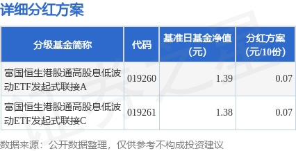 本站消息,11月8日发布《富国恒生港股通高股息低波动交易型开放式指数证券投资基金发起式联接基金2025年第十次收益分配公告》。本次分红为2025年度的第十次分红。公告显示,本次分红的收益分配基准日为10月10日,详细分红方案如下: